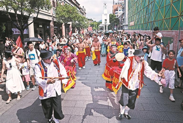 时光回拨到今年国庆长假期间。“百年中山路闽南特色表演快闪”的精彩恍若昨日。闽南民俗歌舞表演亮相时,中山路的游客市民齐声喝彩。“火鼎公婆”、拍胸舞、南少林武术、五祖拳、青狮队、大鼓凉伞、传统南音等表演和互动轮番上阵,让人直呼“过瘾”。
