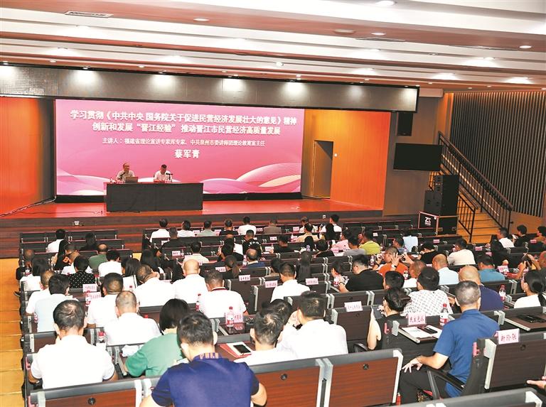 今年7月,《中共中央 国务院关于促进民营经济发展壮大的意见》出台,将“晋江经验”写入文件。长期以来,在上级统战部门、工商联部门以及晋江市委市政府的指导下,作为民营企业的“娘家人”,晋江市工商联(总商会)始终坚持以习近平新时代中国特色社会主义思想为引领,坚持按照“四会”工作要求,始终紧扣“两个健康”主题,用心履行“三项职能”,创新发展“晋江经验”,广泛汇聚党政商企四方合力,团结引领全市民营企业家争当晋江高质量发展的中流砥柱、创新转型的主力领军、共同富裕的中坚力量,打造了富有地方特色的工商联(商会)工作品牌,连续八年被确认为全国“五好”县级工商联,获评全国工商联系统先进集体、省工商联系统先进集体、省级民营经济人士理想信念教育基地、省工商联系统信息工作示范单位、省脱贫攻坚先进集体等荣誉,为晋江民营经济发展壮大、全力建设中国民营经济强市贡献了工商联力量。□本报记者 王宇/文 晋江市工商联/供图