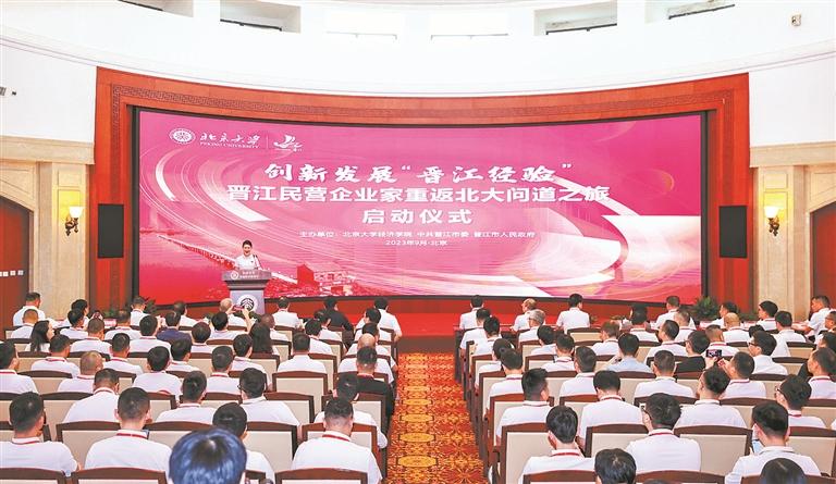 传承弘扬“晋江经验”。打造品牌活动,将每年的11月1日定为“晋江企业家日”“晋江人才日”,组织策划以“潮起晋江 企航未来”为主题的首届活动,举办企业对话、惠企政策、政企晚餐会、益企同行等一系列活动;打通商协会、海外同乡会、世晋青、留学生联谊会,构建经济大统战格局;配合举办“创新发展‘晋江经验’,晋江民营企业家重返北大问道之旅”活动,组织创一代企业家与二代企业家参加北大高端讲坛、“政企同心·共话发展”党政商联席会暨发布《全力建设中国民营经济强市共同宣言》等活动,并举办“青商财俊”培训班,深度培养青商的经营决策能力,积蓄发展力量。