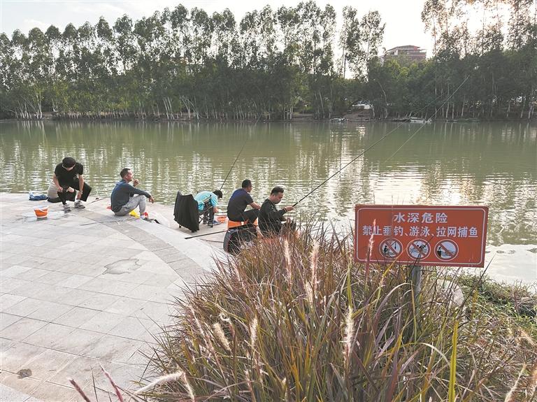 对于市民在此垂钓和拉网捕鱼,叶书记表示,他们已在公园多处地方设置禁止垂钓及捕鱼的警示牌,巡逻队日常也会到公园巡查,若看到渔网会直接没收,遇到有人垂钓会进行劝导,有的人经过劝导会离开,但有的人不听劝导,他们也无能为力。今后他们会加强巡逻和劝导力度,也呼吁市民爱护生态环境、提高安全意识,不要在此垂钓和拉网捕鱼。