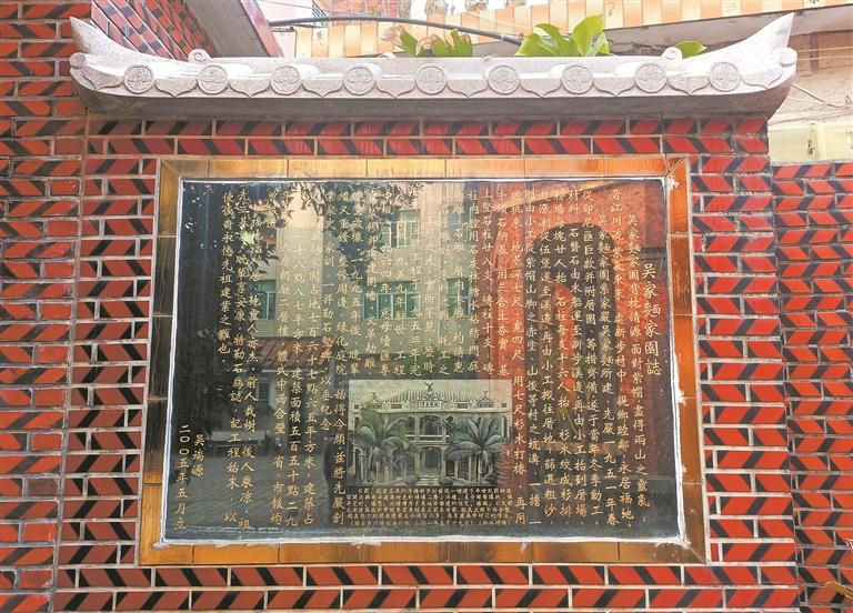 吴家麺民居系爱国华侨吴家麺所建,为中西合璧的闽南华侨建筑精品。这栋气势磅礴的番客楼处处呈现出“洋装其外,汉式其内”的风格,将创业家史、家训、思亲谕代等内容一并勒石竖碑立于家园之中,在感恩先辈的同时,激励后人发扬勤劳开拓精神,为国、为乡多作贡献。