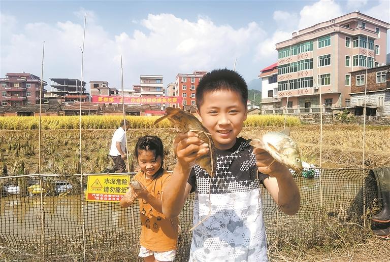 良山村“稻鱼共生”项目是泉州首个深水稻渔综合养殖试点,今年迎来双丰收。“鱼在水中游动挖泥,既摄食水稻害虫、杂草和稻花,又促进水稻根系生长,排泄物还可为水稻追肥”,承担试点的农场负责人吴财情介绍说,通过“稻鱼共生”,可最终生产出鱼稻米和稻花鱼,达到经济效益和生态效益相统一。据介绍,今年7月10日,此次项目试点在25亩稻田里投入2000斤150克/尾的黄金鲫鱼(详见本报7月12日第三版),4个月下来,实际收获水稻1250斤/亩、鱼220斤/亩,增收3305元/亩以上,真正实现“一亩田、百斤鱼、千斤粮” 的目标。