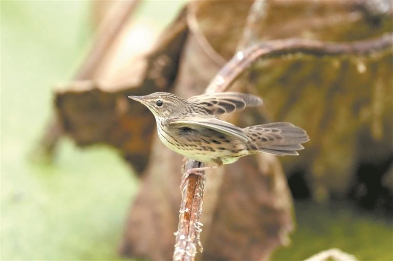此外,近期观鸟爱好者磨牙在九十九溪霞梧村一处荷塘发现新鸟种——矛斑蝗莺。调查员郑榕凯、陈文森随后前往九十九溪区域进行调查,确认有两只矛斑蝗莺,为我市第375种鸟类。调查员龚哲辉在泉州湾区域桃花山进行日常巡护监测时,偶然发现一只小鸟。后经泉州市观鸟学会确认此鸟为方尾鹟,正式录入“泉州市鸟类名录”,为第376种鸟类。