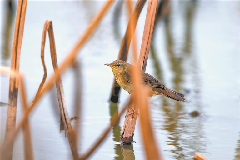 调查员黄宝桐回忆,他在晋江九十九溪的荷塘旁边拍白额雁时,草丛中突然飞岀来一只鸟,十分机敏,当时没看清是什么鸟。后经泉州市观鸟学会确认为北蝗莺,为泉州第373种鸟类。