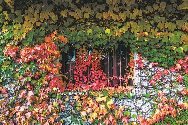 秋染叶红,深深浅浅的秋意,将老旧的围墙编织成绚丽的锦缎,给明灿灿的秋天涂上一抹喜庆。那是执着而又不失雅致的红,是专属爬山虎的红。