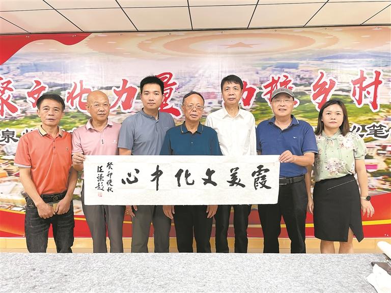 “将书画艺术带进乡村,有助丰富乡村人民文化生活,提高生活品位。同时,书画家走进乡村,感受乡村人文底蕴和发展新貌,也是一次很好的艺术采风。”中国书法家协会会员、泉州市书法家协会名誉主席李德谦说。他现场挥毫,题写了“霞美文化中心”和“霞美百姓书房”等作品。