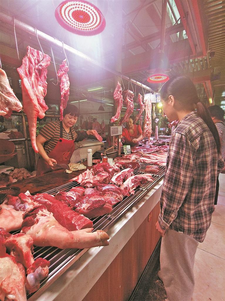 “有听说要禁用‘生鲜灯’,等新规实施后再把现在的‘生鲜灯’拆了。”一位不愿意透露姓名的猪肉摊贩表示。