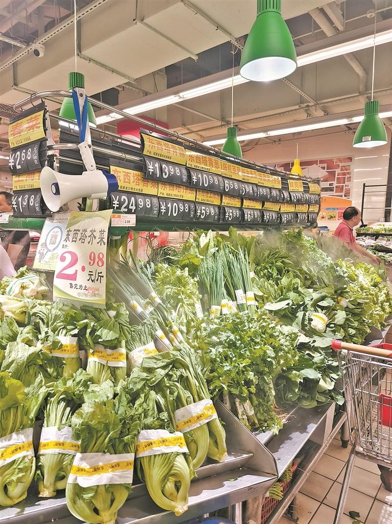 随后,记者来到市区涂门街一家超市,该超市鲜肉区、蔬菜区、生鲜区、熟食区顶部均安装了不同颜色的灯罩,蔬菜区为绿色、鲜肉区为红色、熟食区为黄色、生鲜区为蓝色,灯罩内为白炽灯,在灯光照耀下,各类蔬菜显得水灵灵的,肉品、生鲜等看起来也“秀色可餐”。随后,记者又走访了市区天后路一家菜市场和温陵北路一家大型超市,肉品、蔬菜等食材摊位上,基本使用日光灯。记者走访时观察发现,未使用“生鲜灯”的肉摊、蔬菜摊,其肉品、菜品颜色较为暗淡。