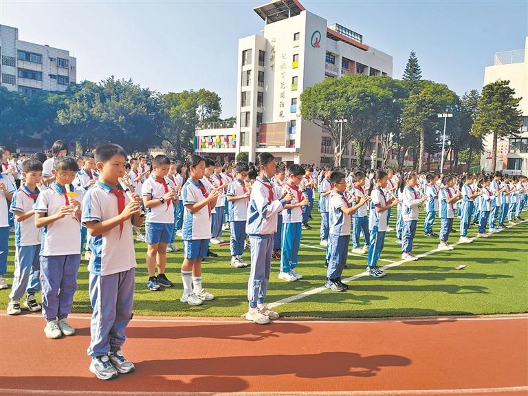 “千笛百器”“千人齐舞”“千人诵读”“千人兴趣(特长)培养活动”……常年开展的“八千”校本课程特色活动,成为泉州市实验小学亮丽的风景线,与会嘉宾观摩时深受震撼。在学校红领巾小导游的带领下,与会嘉宾还实地了解泉州市实验小学文明校园创建成果,学习其全国文明校园创建经验做法。他们参观了红领巾遗失站,红色主题阵地、图书馆、生态园等富有特色的馆室和文化宣传阵地,感受浓浓的书香氛围。学校薪火相传的文化底蕴、多彩的校园景观以及“卓然先行,实验进取”的办学精神,给大家留下了深刻的印象。该校将文明校园建设融入学校发展,发挥“名优校+”教育共同体的示范辐射作用,探索出一条主题鲜明、特色突出、卓然先行的“六好”文明校园创建新路,让文明之风吹拂校园的每个角落。