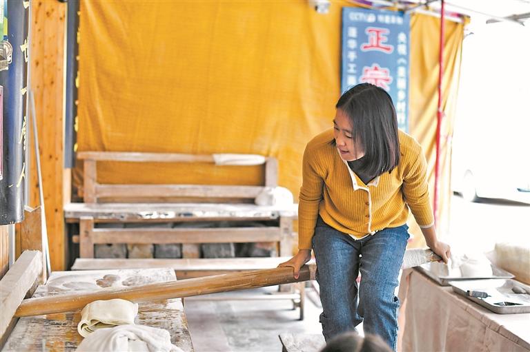 2017年初,就读会计专业的她到泉州市区一电商公司实习。凭着一股拼劲,她转正后的月薪可达上万元。这对刚毕业的大学生来说,已是不错的收入。不过,父母起早摸黑辛苦擀面卖面的情景,不断在她脑海里浮现。一方面想减轻父母负担,一方面也想传承家庭百年来的“屁股面”制作技艺,她萌生了回老家创业的想法。当年9月,她辞职回南安市蓬华镇的老家帮忙。