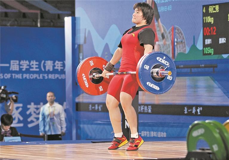 在上个月举行的2023年全国举重冠军赛女子组比赛上,何仁秀夺得81公斤级挺举和总成绩2枚银牌,并打破挺举全国青年纪录。此次何仁秀参加学青会比赛选择76公斤级,她表示,短时间内控制体重对本次比赛没有太大影响,“我在上次打完81公斤级后调整过来了,准备比较充分,状态比之前都要好。”她说。何仁秀最终以总成绩250公斤、领先第二名23公斤的巨大优势夺得冠军。