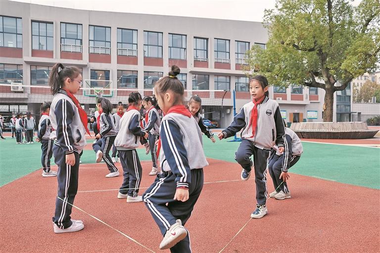 在黑龙江双鸭山市光明小学,学生下课后来到运动场,按划定的区域分散开,跳绳、踢毽子、玩老鹰捉小鸡……他们玩得不亦乐乎,欢快的嬉戏声不断。