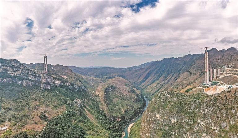 目前,由贵州桥梁集团和贵州公路集团共同承建的六安高速花江峡谷大桥两岸主塔顺利封顶,大桥关键性施工节点获突破性进展。