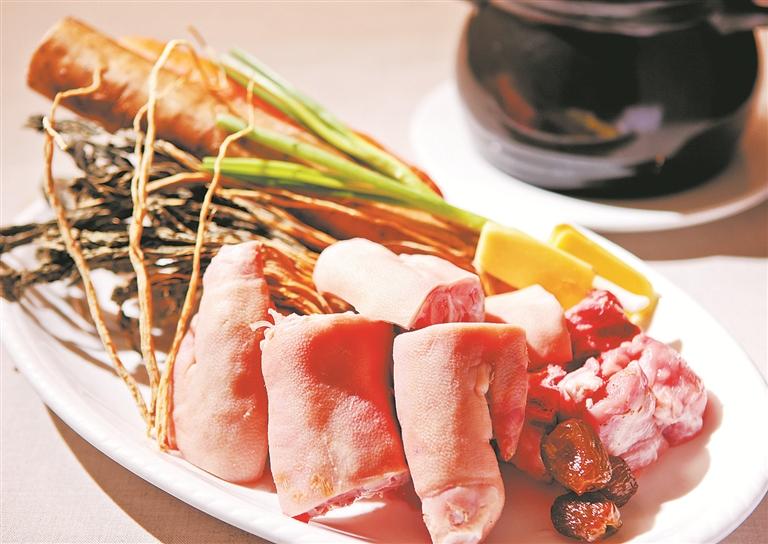 在烹煮猪脚时加入一些益身药材,能制成有利于保护关节的药膳。