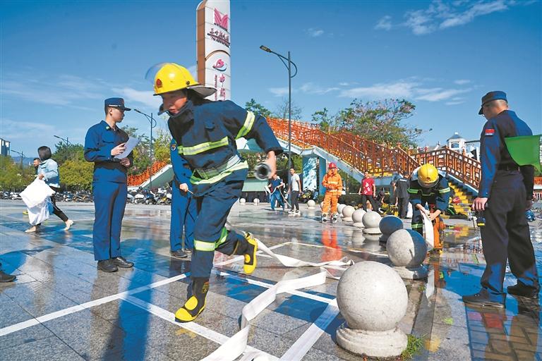 11月8日,永春县2023年“119”消防宣传月启动,将围绕“预防为主,生命至上”这一主题,开展一系列丰富多彩的主题宣传活动,大力普及消防法律法规和消防安全知识,提高全民消防安全素质和社会抵御灾害能力,引导公众关注消防、学习消防、参与消防。当日,永春第三届消防队伍职业技能竞赛同步开展,按消防救援站组、乡镇消防队组、微型消防站组3个组别进行竞赛。图为比赛现场。(颜杰 章阿玲 摄)