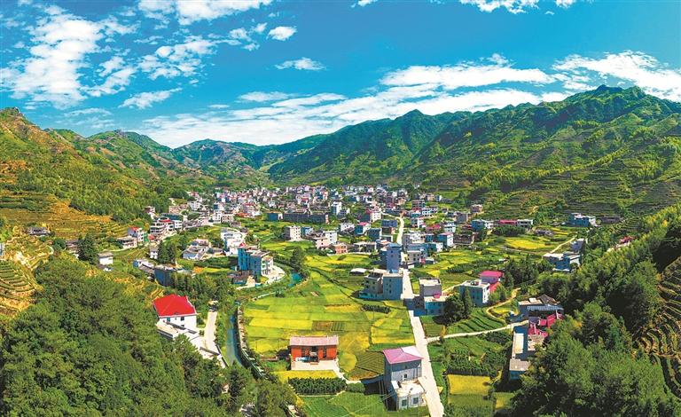 徜徉鹅卵石小道,小溪潺潺,古柏苍苍,香樟如盖,繁花点缀的村道干净平坦,一垄垄高耸的淮山树藤郁郁葱葱,水稻正在灌浆孕育,层层叠叠的茶园青翠碧绿。小溪与田野,青山与屋舍,营造出一幅静谧而蓬勃的乡村景象。