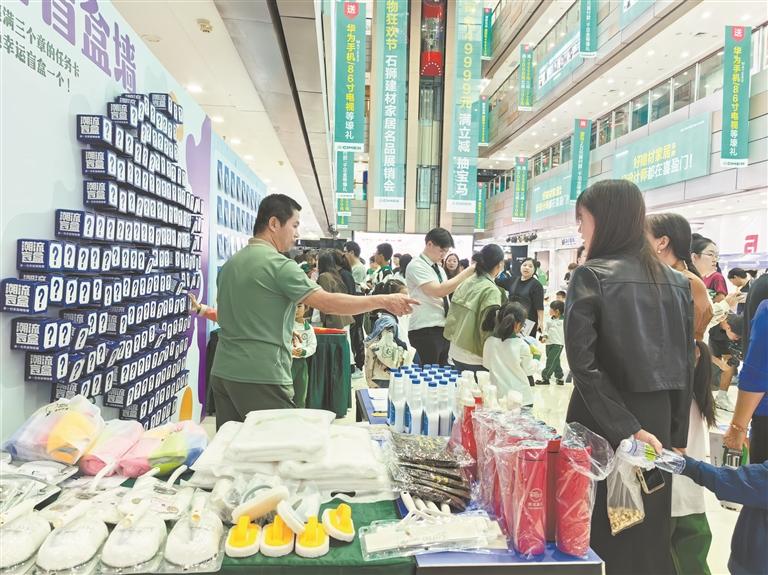 家居焕新促消费活动现场,通过趣味活动向消费者派送福利。
