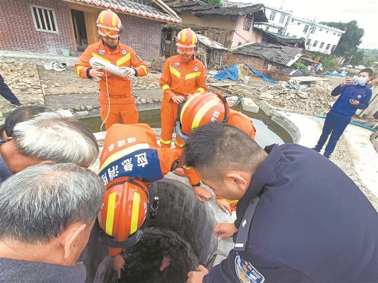 本报讯 (记者陈明华 通讯员张徐泙 文/图)昨日10时30分许,德化县公安局三班派出所值班民警接到群众报警电话,称有两名村民不慎跌入村中一口十几米深的水井中,请求救人。
