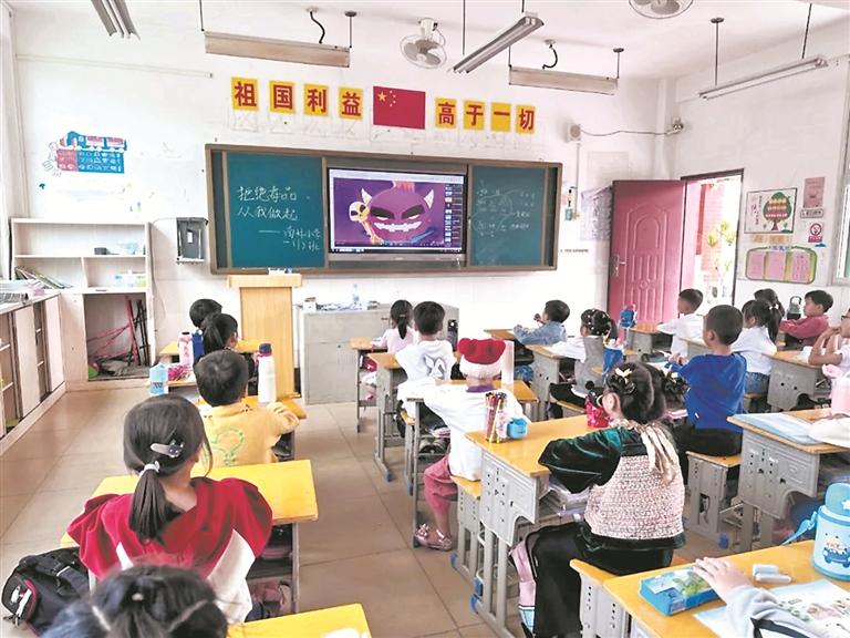 学生们通过主题班会学习禁毒知识(安海镇南林小学 供图)