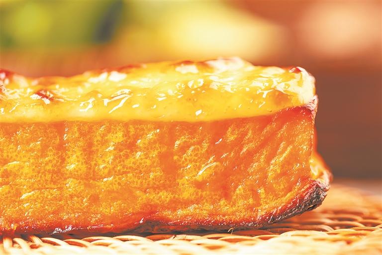 红薯油糕做好了,色泽金黄,细腻柔软,香味飘荡,欢乐也飘荡,无尽的甜美时光、儿时的味道又回来了。