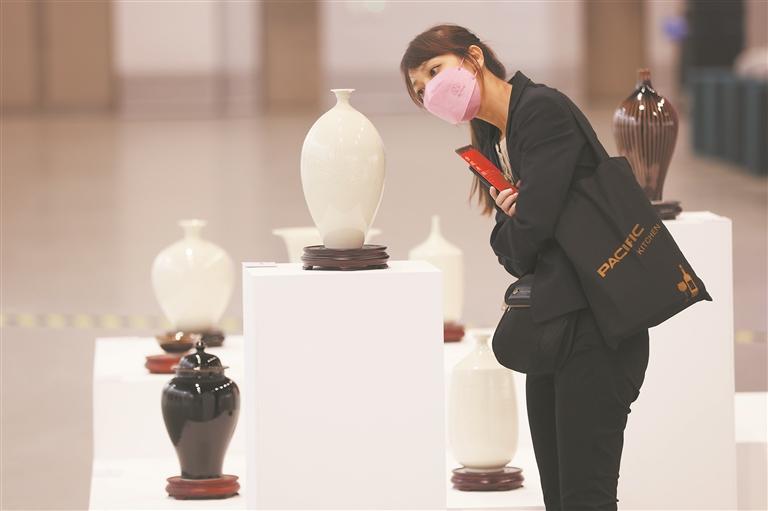11月14日,2023两岸企业家峰会年会在南京开幕,“金瓯无缺——海峡两岸青年当代艺术与文化创意展”同期举办,展览邀请了来自海峡两岸100位艺术家的近300组作品参展,涵盖建筑、文创、绘画、数字影像等艺术门类,呈现了两岸青年艺术家交流合作、融合发展的新气象。图为展览现场。