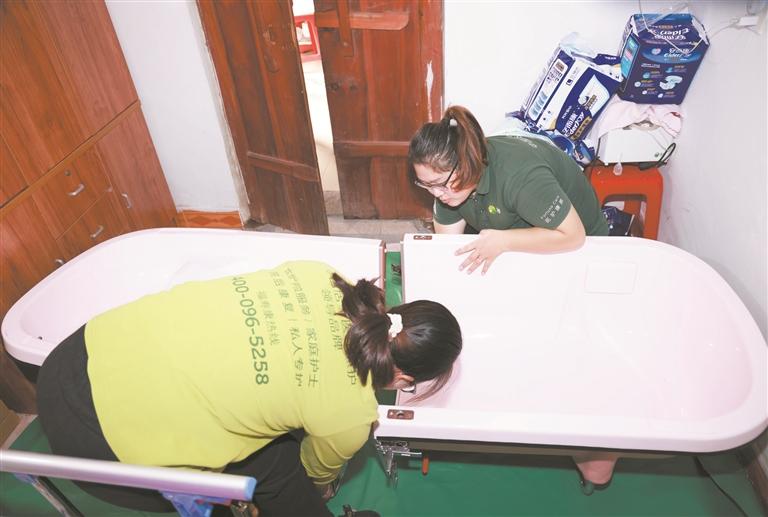 洗澡是一件再平常不过的事,但对一些行动不便的老人来说,痛快地洗个澡却近乎奢望。针对失能、半失能老人这一需求,今年10月以来,泉州市医疗保障局晋江分局和晋江市长期护理保险工作领导小组办公室推出失能人员免费助浴护理体验服务。昨日,晋江福寿康助浴团队的护理人员来到位于晋江内坑的长护险待遇享受对象吴老伯家中,为吴老伯送上助浴服务。