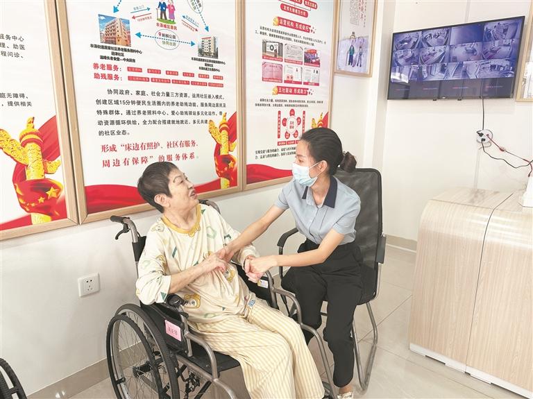 1991年出生的黄宝珠曾是一名急诊科护士,2018年转行从事养老服务工作,现在是泉州温晴养老服务有限公司——丰泽街道居家社区养老服务照料中心(迎津社区)护理部主任。