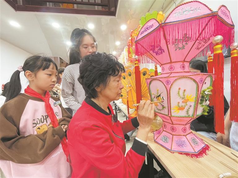 近年来,曹淑贞频频走进泉州市非物质文化遗产馆和校园,弘扬泉州花灯和彩扎艺术,期待让更多的人来关注非遗瑰宝。