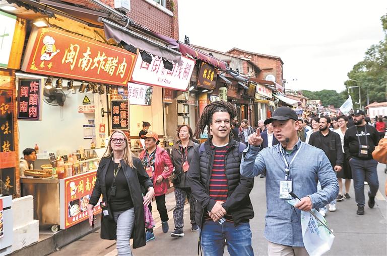 两天时间里,驻华外交官们实地走访参观了泉州开元寺、西街、泉州海外交通史博物馆、晋江梧林传统村落。在苏廷玉故居观看非遗演出,在蟳埔民俗渔村体验蟳埔女簪花文化,沉浸式感受泉州城市包容共生的文化特质、丰厚的历史积淀和丰富多彩的民俗文化。“我们是第一次来泉州,看到了美丽的风景、感受了深厚的文化,印象深刻的是体验了蟳埔女簪花习俗,了解了传统渔民的故事,这是一种与众不同的传统文化。在海外交通史博物馆了解泉州海外贸易发展历史和海洋文化的演变过程,很喜欢这座有文化、有历史、有独特风俗的城市。”哥伦比亚共和国驻华大使塞尔希奥·卡夫雷拉说,这样的沉浸式体验很棒,自己也会把视频、照片分享给亲人和朋友们。