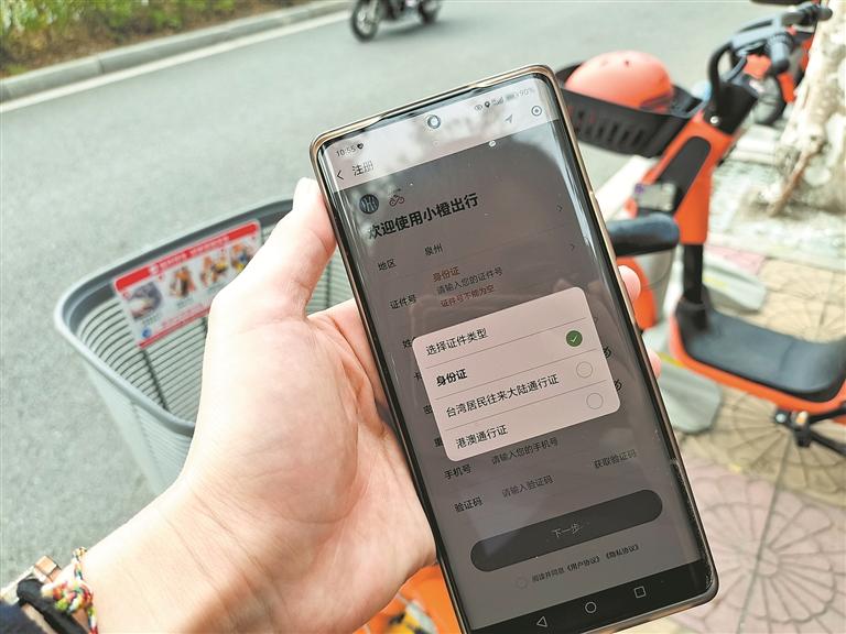 同样在该校土木建筑学院读书的马来西亚籍大三学生顾同学,也向记者演示了租借“小橙”的过程。微信扫码跳转到小橙出行的注册页面后,他点击证件号的按钮,随之跳出了“身份证”“台湾居民往来大陆通行证”和“港澳通行证”三个选项。顾同学说,他在大陆都是使用护照信息注册软件,因为该页面没有输入护照信息的选项,自己至今无法成功注册并租借“小橙”。