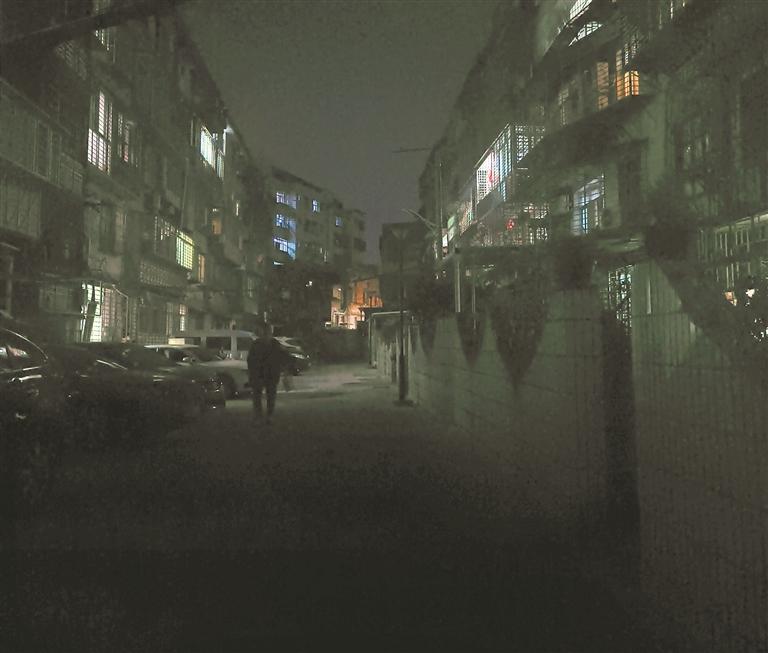 居民天黑后出门只能打开手机的手电筒功能,老人们出行很不方便。