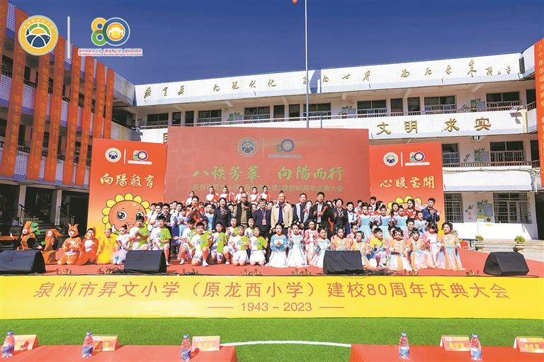 薪火相传,初心不变。昨日上午,泉州市昇文小学(原龙西小学)喜迎建校80周年华诞,该校以“八秩芳华,向阳而行”为主题,举办盛大庆典大会。海内外校友及社会各界人士相聚母校,叙旧情展未来。现场还举办了办学成果展、书画作品展及精彩文艺汇演,校庆取得圆满成功。(王丽虹 郑银杰 摄)