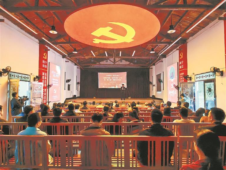 为推动主题教育走深走实,近日,“深学新思想 福影建新功”福建省电影“百学千映”计划暨“福小宣”电影艺术党课在永春县桂洋镇金沙村“党建+”邻里中心举行。《传承红色基因 赓续红色血脉》主题宣讲、《我和我的祖国》主题教育影片让大家受益匪浅,感触颇深,从中汲取前行力量。(谢丽琼 摄)