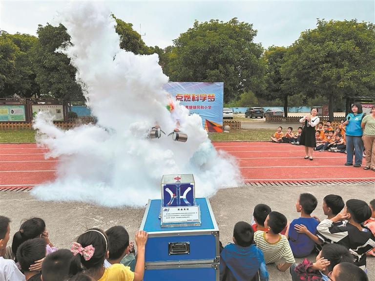 无独有偶,近日,“流动科技馆”走进惠安县同和小学,除了互动式科普展具,科普社工还为师生们带来了液氮大爆炸、火焰掌等科学表演秀,以及憨态可掬的机器人表演,让师生们大开眼界,点燃了孩子们的科学热情。