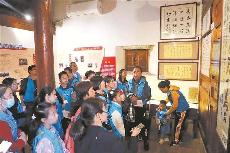 结合全国总工会“中国梦·劳动美——凝心铸魂跟党走 团结奋斗新征程”主题宣传教育要求,近日,泉州市总工会携手全市各行业工会会员近100人,到泉州台商投资区开展研学活动。在张坂镇崧山村孙易彬故居,大家聆听生动的解说,观看图片资料和珍贵文物,了解抗战归侨孙易彬、抗日烈士孙庆珍、明末忠臣孙胤武、爱国儒医孙崧樵等崧山古今爱国志士、忠臣廉吏的典型事迹,深刻领悟爱国精神。(黄翠阳 罗剑生 摄)