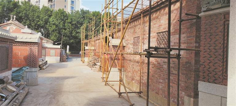 本报讯 (记者许雅玲 范金林 文/图)日前,记者来到位于晋江青阳街道的省级文物保护单位五店市建筑群之庄用宾故居修缮工程施工现场,十多名工人正在修缮上厅的屋顶、木构架等。该工程的监理、设计、施工单位工作人员及青阳街道办事处工作人员、庄氏宗亲等围坐一堂,研究修缮中遇到的问题,现场协商解决方案。