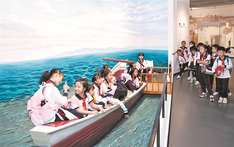 我市教育教学质量不断提升,“双减”持续提质增效。图为泉州市晋光小学近日组织开展秋季研学游活动,学生们在老师的带领下,到泉州海外交通史博物馆参观文物,了解历史,快乐研学。 (张九强 摄)