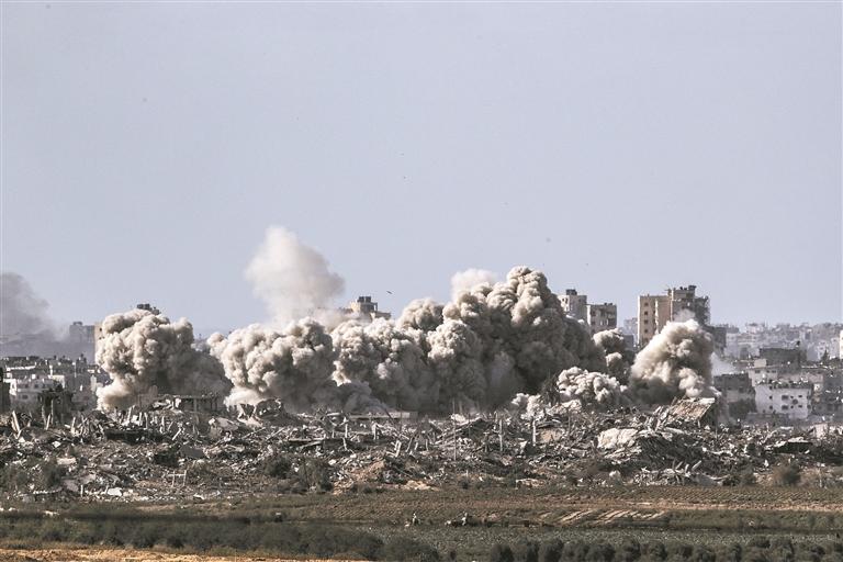 以色列军方发言人20日称,在加沙城宰通地区发现了哈马斯用于制造火箭弹的工作室、一些武器以及地道入口,同时以军在加沙城中心地带的攻势持续,将哈马斯武装人员围堵在城东地区。以军当天继续对加沙地带多地展开空袭。据巴勒斯坦媒体报道,20日深夜至21日凌晨,以军空袭了加沙地带中部的努赛赖特难民营,造成17人死亡。