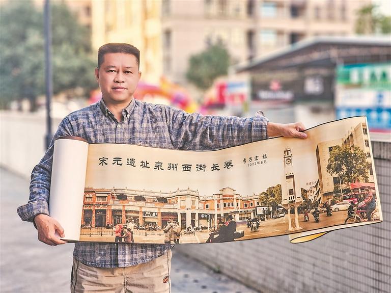 不久前,李子宏将这幅长卷打印和装裱好捐赠给泉州市档案馆永久收藏。“在档案馆里,这份作品可以得到更好的保存,希望通过我的作品,西街这段时光岁月能够得以保留,也让更多的人关注和保护西街这片历史遗址。”李子宏表示,下一步,他计划用摄影长卷的形式,将安溪铁观音制茶流程记录下来,让这一“双世遗”为更多人所熟知。
