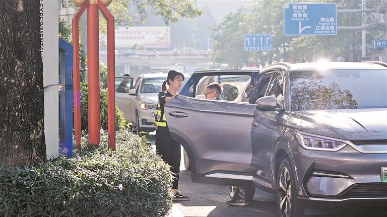“前几年,送小孩上学真是苦不堪言,停在主干道上经常被抓拍。”陈先生的孩子现在就读六年级,这几年深刻感受到了校门口交通组织的变化。他说,部分家长为了个人方便,选择在丰泽街的机动车道上接送孩子,存在较大的安全隐患,且严重占用道路资源,导致高峰时段(尤其是早上上学时段)交通拥堵。近年来,用小车接送孩子的家长越来越多,学校又在主干道旁,只有解决了车辆停放难题才能让拥堵问题迎刃而解。如今,交警、学校共同找到了有效的化解办法。
