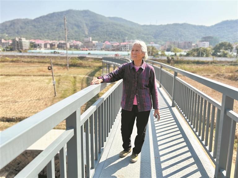 昨日上午,南安洪梅镇梅溪村80岁的戴湾吃过早饭后,照例来到爱心铁桥散步。100多米的爱心铁桥架在一片80多亩的农田上,系乡贤捐资所建,连通松仔尾古大厝和梅溪流域堤岸。站在桥上,看到昔日荒废的农田、闲置的古大厝和杂草丛生的荒地被修整、盘活,她十分开心。前几天,听闻村里要拓宽古大厝前的道路,她主动配合村委会拆除自家鸡舍,助力文明和谐乡村建设。 □本报记者 陈灵 黄耿煌 通讯员 黄耿鑫 实习生张烨 文/图