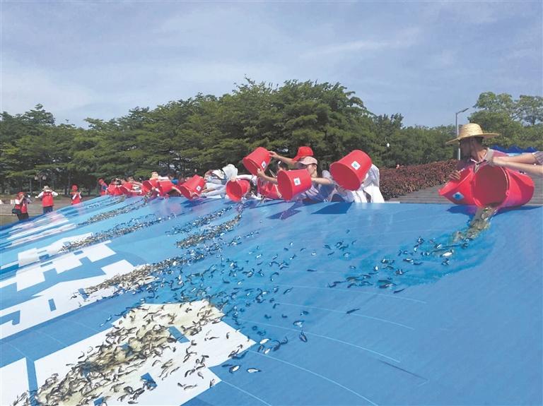 8月15日,正值我国首个全国生态日,台商区通过陆海联动,在海丝生态公园各池塘、浮山码头附近海域同步开展2023年渔业资源生态保护增殖放流活动,放流鱼苗、虾苗11379.8万尾,进一步促进鱼类资源修复,加强全区水域生态环境保护。今年以来,台商区各相关部门联合各乡镇、华侨大学等院校及海洋环保与护河志愿者共同开展多场鱼类增殖放流活动,共有200多人次参加,累计放流黑鲷鱼苗、鲢鱼、日本对虾等1.2亿尾、投入购苗资金50万元。截至目前,已连续9年开展渔业增殖放流活动,放流鱼虾苗6亿余尾,投入购苗资金350余万元,有效恢复和补充水生生物数量。