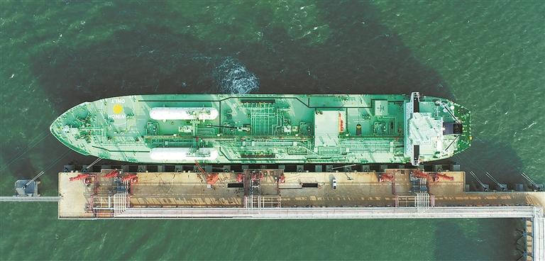 该泊位工程项目一期项目投资12亿元,年设计通过能力339万吨,配套建设仓储罐区17.4万立方,预计每年可新增250万吨的液化烃类化工品装卸能力。(刘祖培 林弘梫 摄)