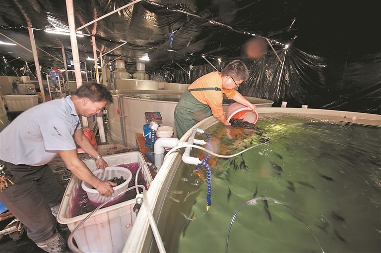 近日,首批3万余尾来自广东的新品种“鼎鳜一号”全雌体饲料鳜苗种,经过近千公里长途运输,抵达南安市梅山镇润盈水产养殖合作社。它们将在这座“养鱼工厂”的大水池中安家落户,经过半年生长,即可走上千家万户的餐桌。
