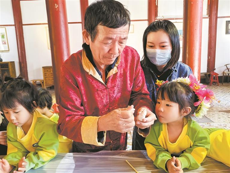 日前,泉州幼儿师范学校附属幼儿园2022级2班非遗研学活动在中心市区通政巷苏廷玉故居举行,孩子们跟随非遗传承人体验了制作妆糕人的过程,并了解省级非遗项目——泉州火鼎公婆,感受非遗文化的独特魅力。