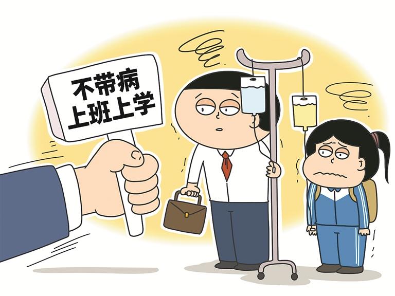 当下正进入呼吸道传染病高发期,儿童感染人数增多,“学生边输液边做题”现象引发关注与热议。为此,多地近期发布通知,倡导合理安排,不带病上班上学。(视觉中国)