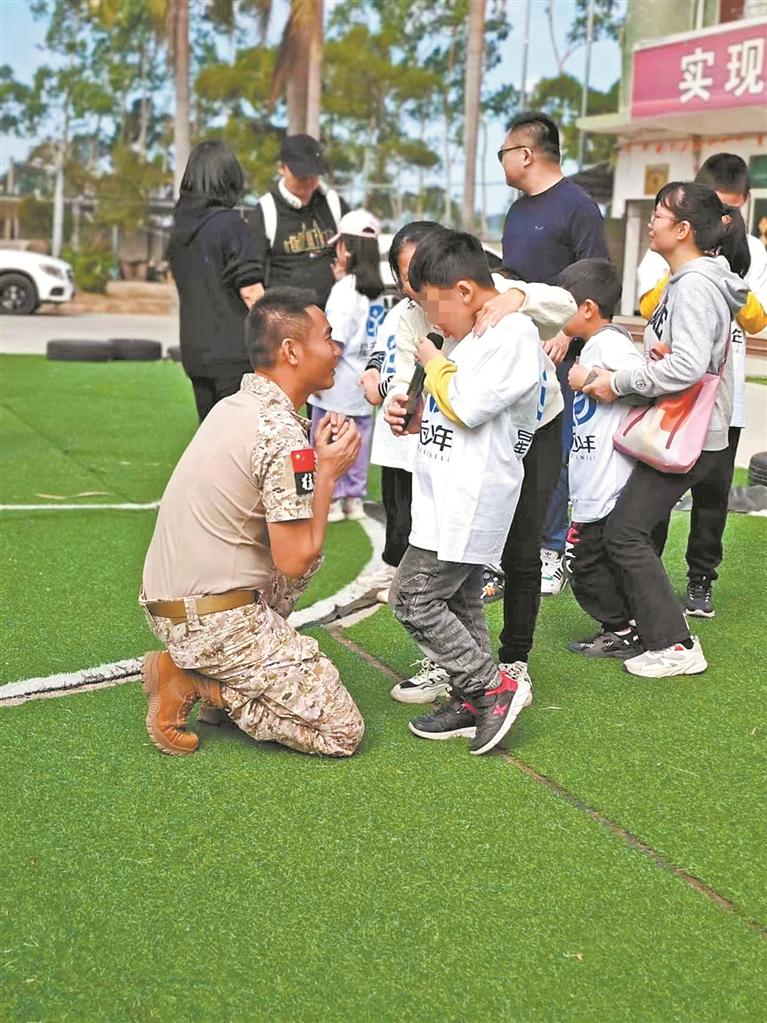 “我们现在分成两队,一起把毛毛虫骑到对面再回来,先回来的那组胜利。”教练的指示刚落下,孩子们便迫不及待地向空地上的毛毛虫跑去,家长们紧随身旁,有的在拍照、有的在维持秩序,场面好不热闹。之后,孤独症家庭还在教练的指导下体验了射击,用没有杀伤力的“水宝宝”做子弹,感受了一把CS的快乐。