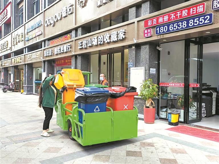“固定的时间段来收集垃圾,很方便。”万荣街的一商家说,环卫工上门收集垃圾,减少了垃圾的二次污染,方便商家的垃圾投放。垃圾收集车上有分类垃圾桶,也加深了对垃圾分类的认识。