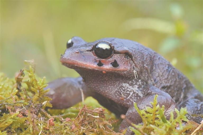 据戴云山保护区管理局工作人员小黄介绍,“角怪”学名崇安髭(zī)蟾,是角蟾科拟髭蟾属两栖动物,为中国特有的珍稀蛙类,属于“三有保护”野生动物。这种蛙天生不怕冷,生活于海拔800—1600米林木繁茂的山区,常栖息在流溪附近的草丛、土穴内或石块下。崇安髭蟾不仅是生态环境变好的证明,还因为能捕食多种昆虫,本身也对森林病虫害起到防除作用。