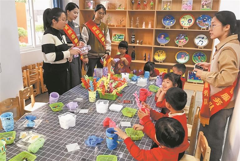 “小朋友们,大家一起动手,把这些彩纸变成一束花吧,看看谁做得更漂亮……”日前,在石狮市宝盖镇宝昌花园小区的“邻里之家”里,宝源社区“党建+”邻里中心与石狮市第三实验幼儿园联合举办了一场以“童心童行”为主题的课后服务活动,社区与幼儿园的党员志愿者带领小朋友做手工、读绘本。
